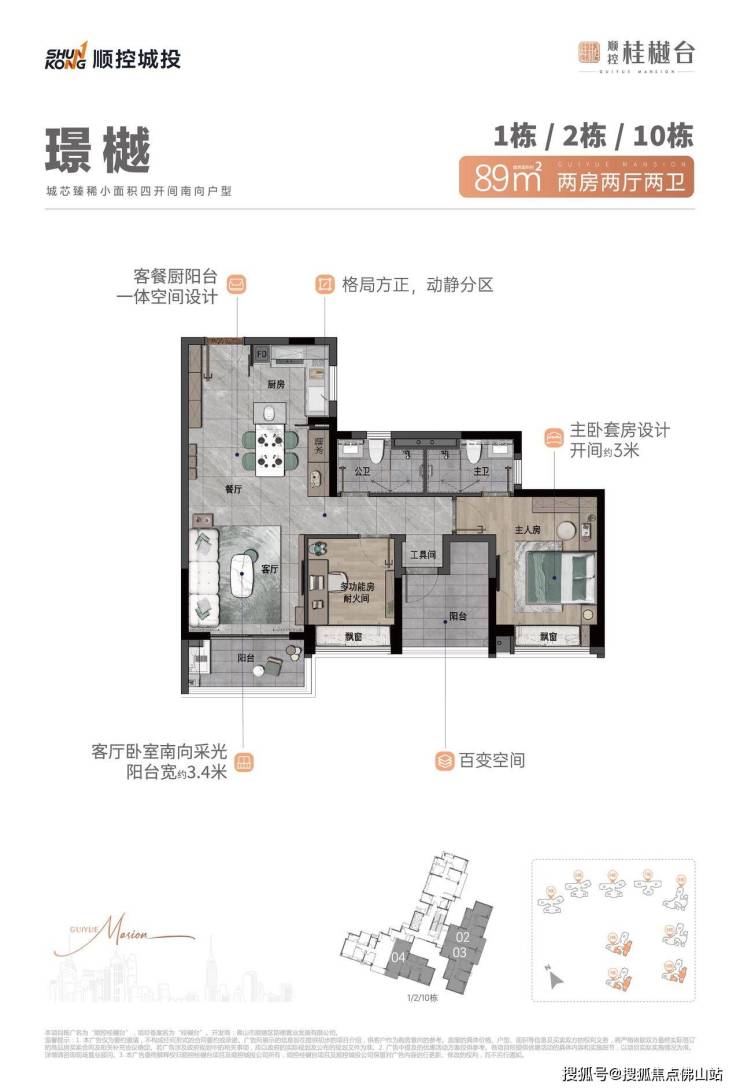 目前桂樾台在售1/2/3/5/6/10栋,主推89-125㎡三四房,均价约1万/㎡。