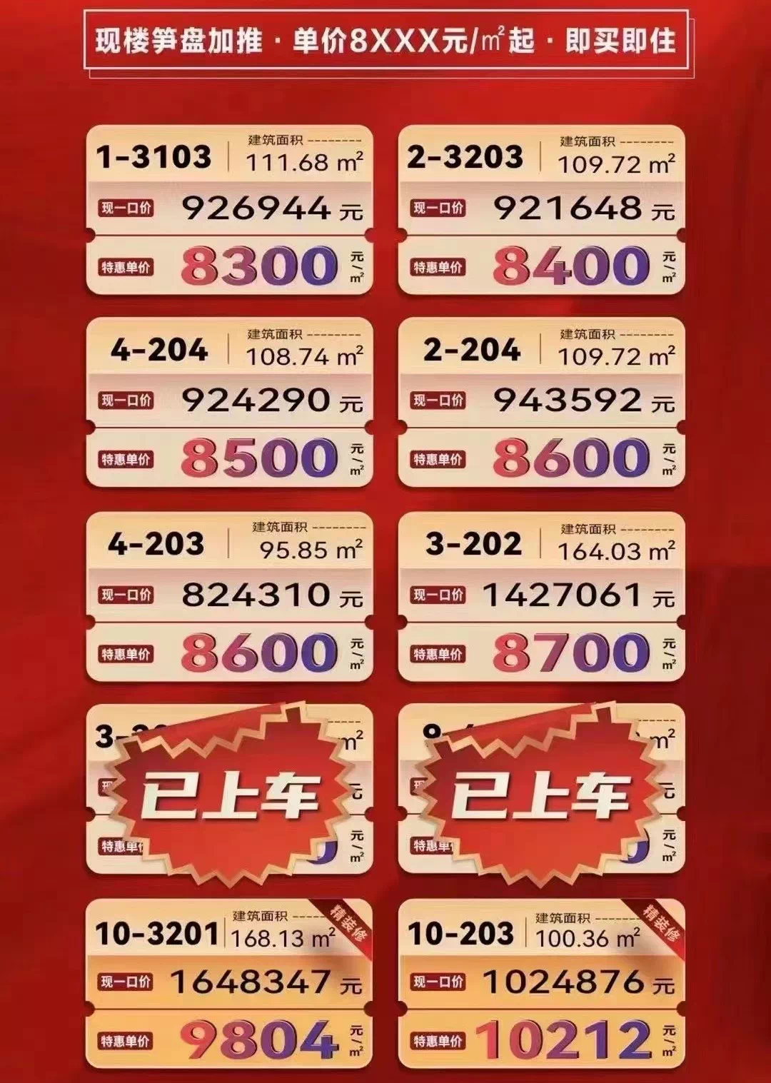 长期量价不济的非限购区,在这轮普跌行情下,受到不少打击。西南观X豪X,现楼推出一口价秒杀单位,面积涵盖92-168㎡,均价8300-8700元/㎡,首付仅10万,该盘较高售出1.3万/㎡。