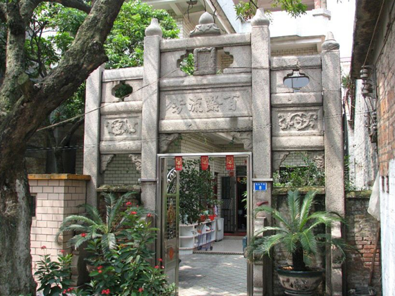 百龄流芳坊是四柱三间通天式牌坊,位于黄圃镇镇一村,建于清代道光十八年(1838年)。