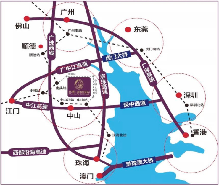 保利香槟国际位居中山北,坐落“三规合一”黄圃新中心。即将开通的黄圃快线连接顺德容桂与中山市区,广中江高速、深中通道等快速通道让黄圃便捷对接粤港澳大湾区各城区。未来更有广州地铁18号线连接中山城轨7号线(规划中)。