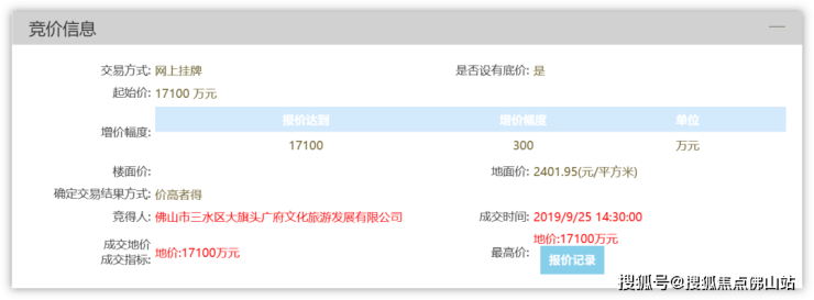 回溯至2019年,大旗头广府文化旅游发展有限公司以总价1.71亿夺得项目地块,折合楼面价约1601元/㎡。