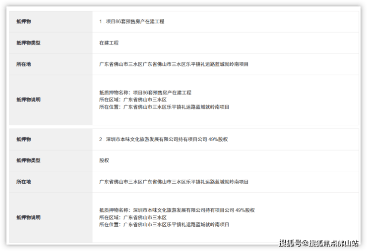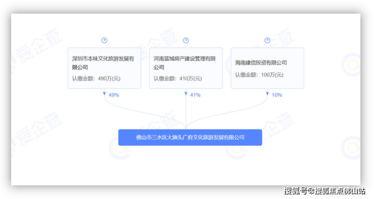 股权则为深圳市本味文化旅游发展有限公司持有项目公司49%股权、河南蓝城房产建设管理有限公司持有项目公司41%股权、大旗头广府旅游发展有限公司10%股权。