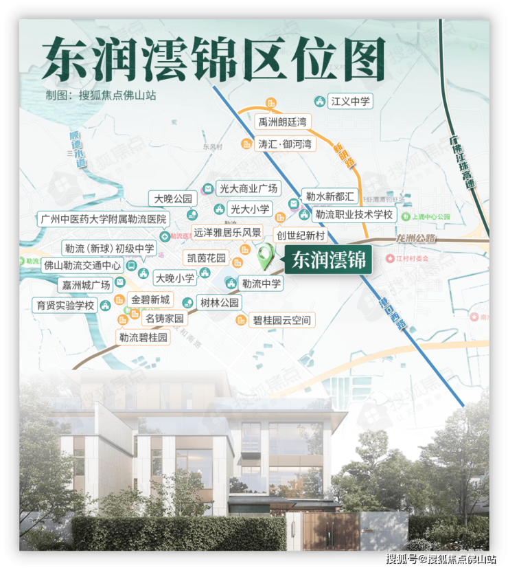 东润澐锦具体位于顺德区勒流街道龙洲路以北,北面是约200亩城央湖景公园,将打造成勒流“城市生态会客厅”,东临龙州路。