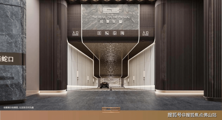 从约66米长的酒店式主入口门庭到归家入户,结合镜面水景与艺术装置,构建出充满仪式感的归家序章。