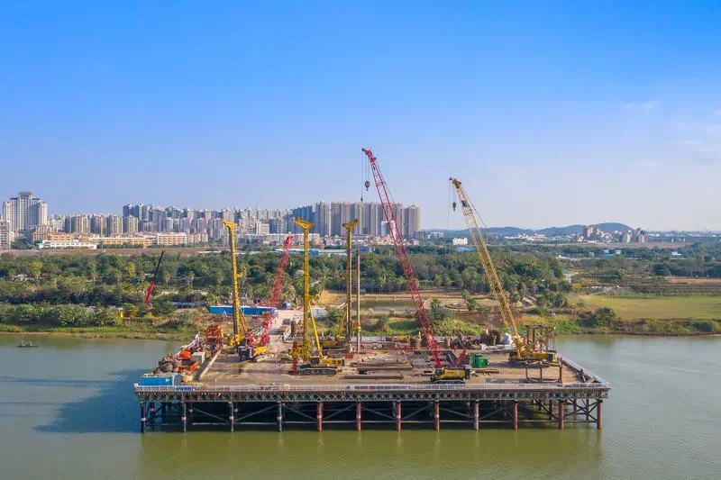 三水三桥项目总工程师叶子健介绍,目前,三水三桥已完成主桥索塔桩基础、主桥索塔承台施工和索塔下塔柱施工,明年将开始搭建168米高的索塔。
