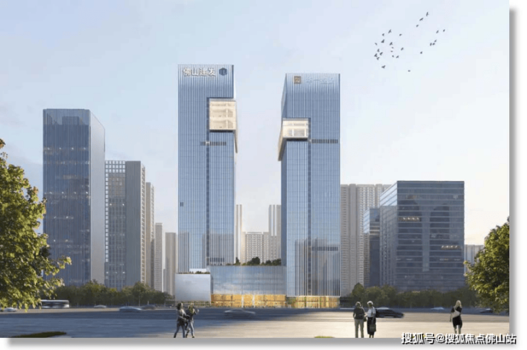 项目是双子塔造型,东塔高218米、西塔高196米,刷新了季华中轴天际线。