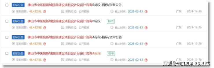 去年年底,佛山市中医院新城院区建设项目设计及设计咨询A标段、B标段两大项目同时启动招标,于 2月13日开标 。