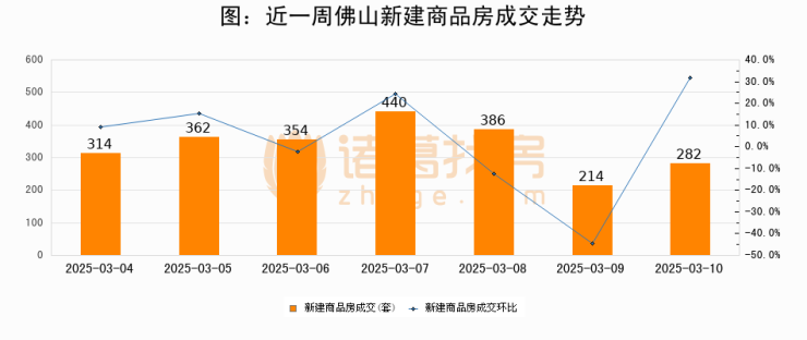 【佛山成交日报】03月10日新房成交282套、二手房164套;