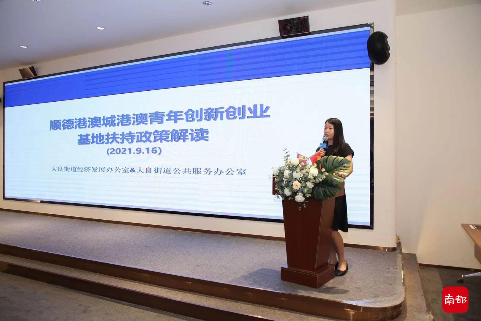 同时,大良街道经济发展办公室科技金融股副主管唐雪兰就港澳青年双创基地政策中衣食住行补贴和创业就业优惠等问题进行了深入讲解,引导、帮助港澳企业和青年顺利申报政策。
