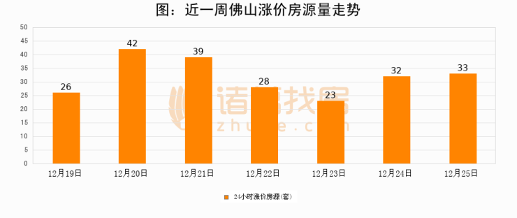 根据诸葛找房数据显示,佛山24小时涨价房源量为33套,较12月24日增加1套,环比上涨3.1%。与此同时,涨价房源占比小幅扩大,业主信心有所提升。