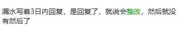比如漏水问题写着3日内回复,回复后却迟迟没有进行整改。