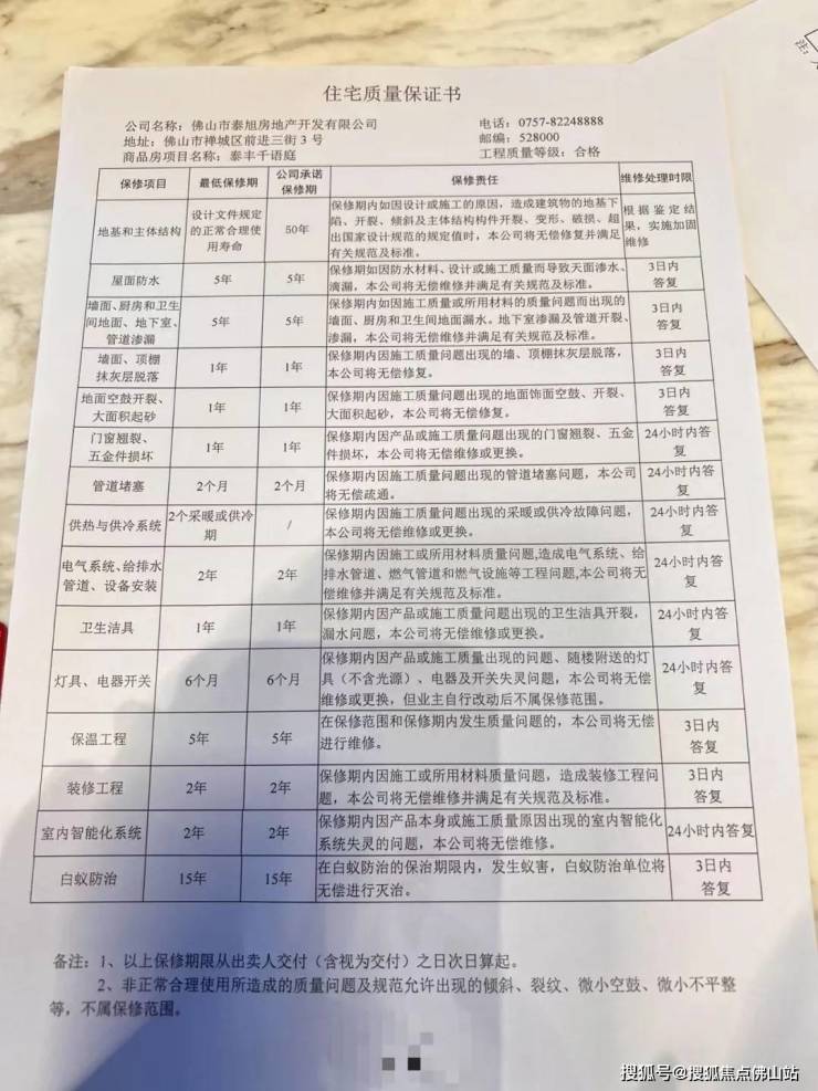 项目的《住宅质量保证书》清晰标记,房面漏水承诺保修期5年,维修处理时间3日内答复。