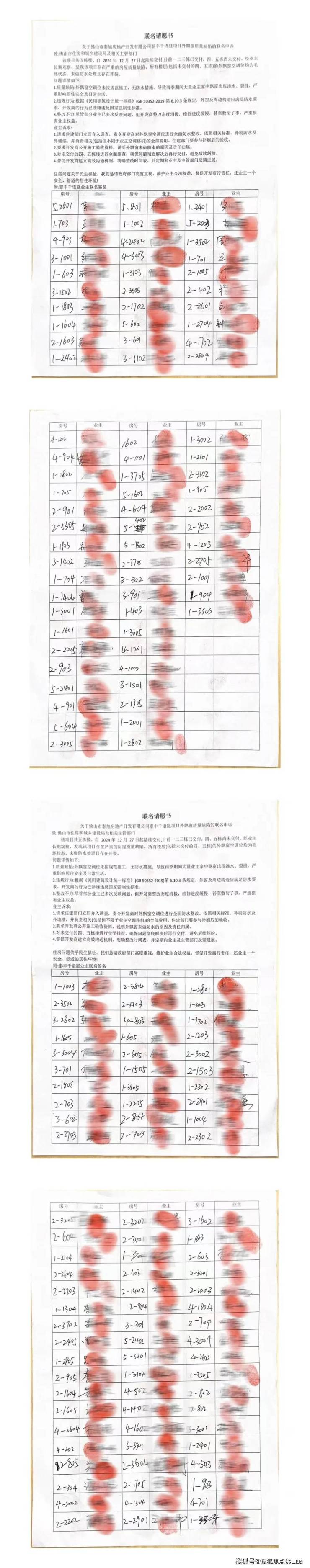 4月28日,超160名业主联合签署了整改请愿书,内文详细披露了目前楼栋存在的问题,包括外飘窗空调位未按规范施工,无防水措施,整改不力等等。