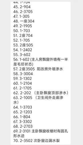 截至发稿,关于‘房屋漏水’的业主自发接龙已有70户,占比超19%。