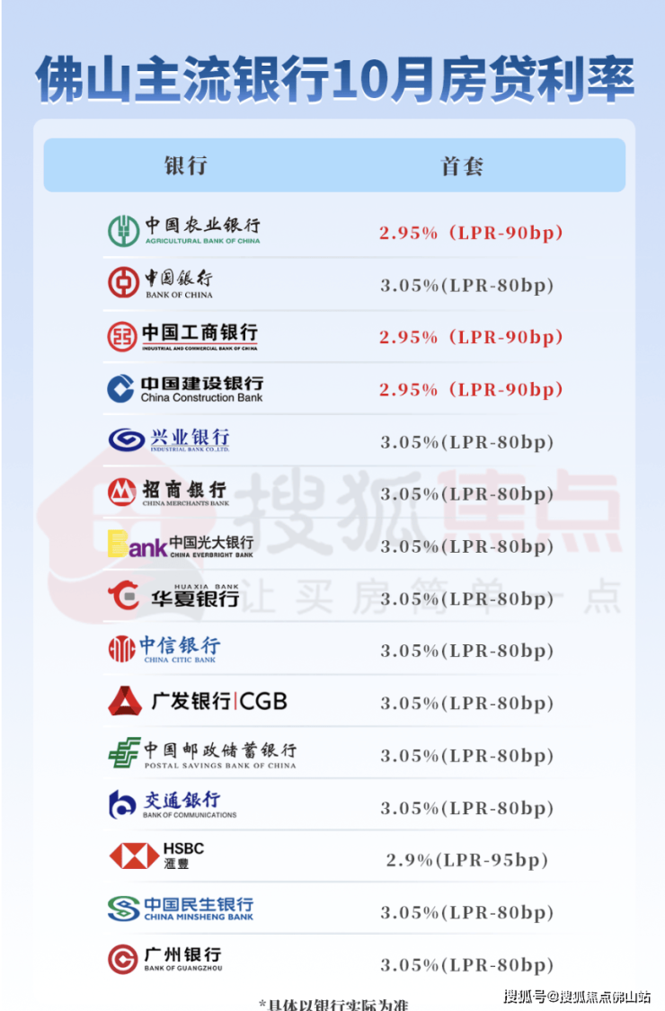 若按照最新LPR基点,佛山首套利率将普遍降至2.8%,若按照最多的减少95bp计算,则首套利率最低可以去到2.65% 。