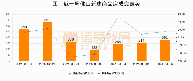 【佛山成交日报】03月05日新房成交362套、二手房604套;涨价房源2套
