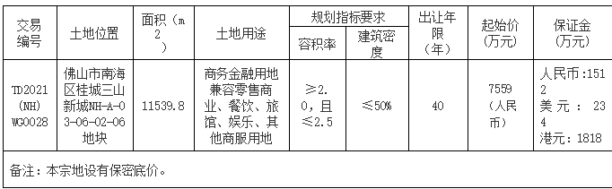 宗地位于南海区桂城三山新城NH-A-03-06-02-06地块,占地11539.8㎡,起拍价7559万元,原定于6月30日(今天)出让,现延迟至7月5日上午10点网拍。