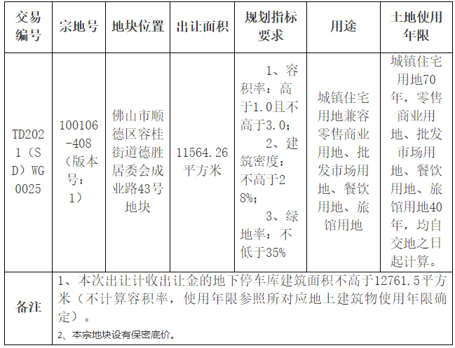 宗地位于顺德区容桂街道德胜居委会成业路43号地块,占地11564.26㎡,起拍价20122 万元,于7月22日上午10点网拍。