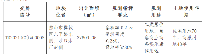 宗地位于禅城区东平路东侧、沙口水厂南侧,占地37609.05㎡,起拍价112828万元,于7月12日上午10点网拍。