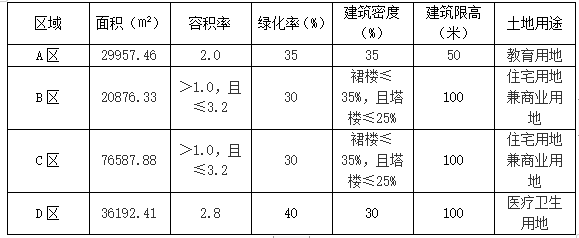 宗地分为4区开发,其中B、C区为住宅用地兼商业用地,A区为教育用地,D区为教育用地。(宗地区域详情表如下)