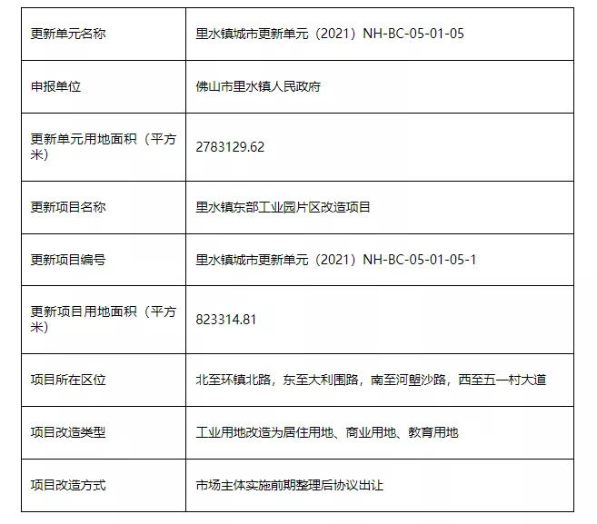 近日,小编从南海区人民政府官网获悉,位于南海区里水镇东部工业园片区改造项目城市更新单元计划于12月3日正式获批!