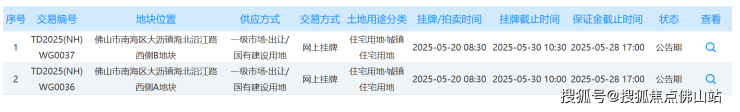 分别为大沥镇海北沿江路西侧A地块占地约2.3万㎡,起拍总价60859.7088万;大沥镇海北沿江路西侧B地块宗占地约2.4万㎡,起拍总价64626.936万。