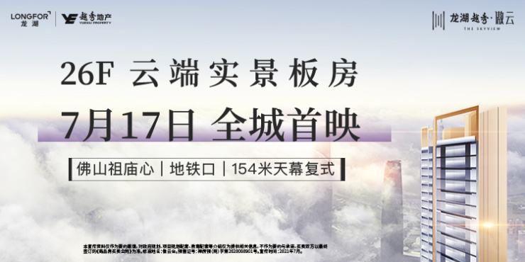 自官方获悉,一等半年,佛山中心区祖庙的天幕复式——龙湖越秀·傲云本周末即将上新,同时,其位于26层高的108㎡云端实景样板房,也将在7月17日(本周六)惊艳亮相,据透露,在实景样板间可俯瞰佛山城市繁华风光,景观视野及采光观感均让人大开眼界!