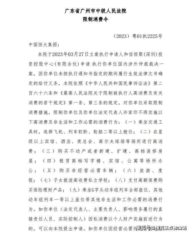 许家印及中国恒大再被限制高消费