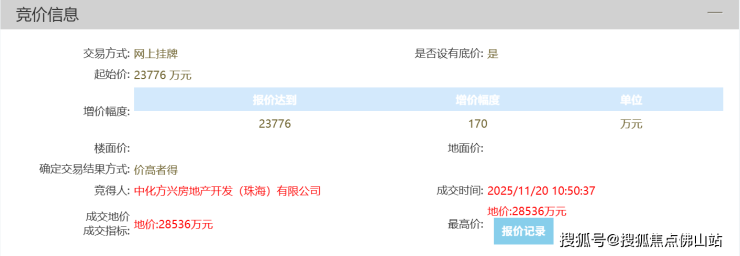此次竞拍经历了28轮出价,总价从23776万涨至28536万,溢价率达20%。