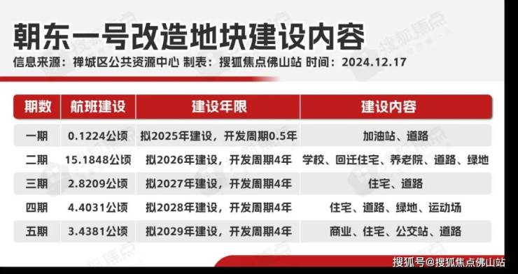朝东一号将分五期开发,总建设周期预计7.5年 ,每期主要建设内容及年限如下: