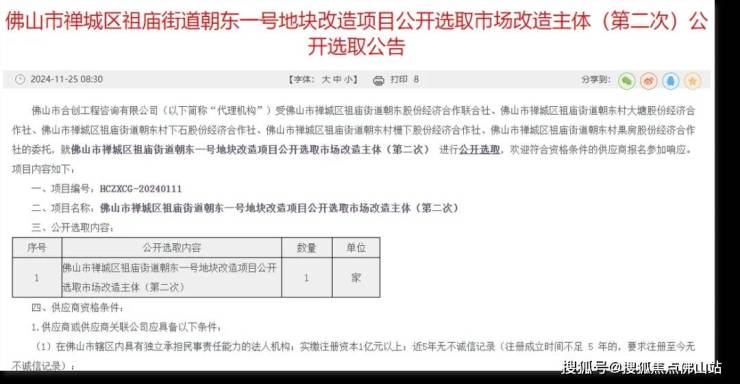 11月25日,祖庙街道再次发布选取公告,最终敲定中标主体。