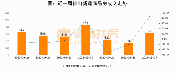 【佛山成交日报】09月27日新房成交622套、二手房265套;涨价房源297套