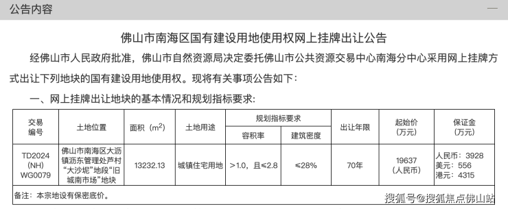 九月终止出让的大沥旧城南市场地块重新挂牌了!