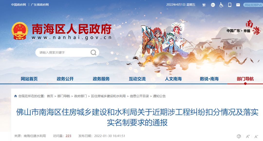 南海区政府甚至点明批评当代阅府项目:劳务管理混乱,未落实用工实名制及工人工资专用账户发放制度,且在政府协调下仍未积极处理,导致多名工人聚集在案场讨要工资。