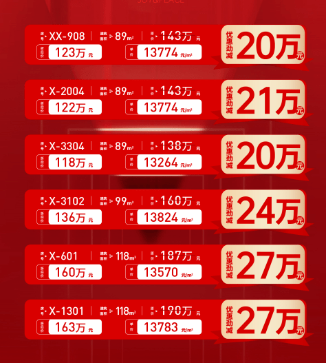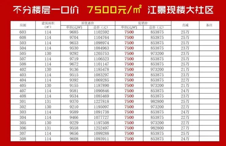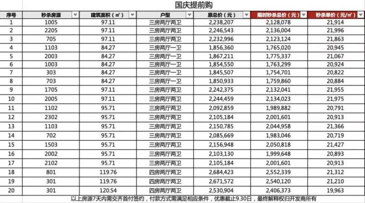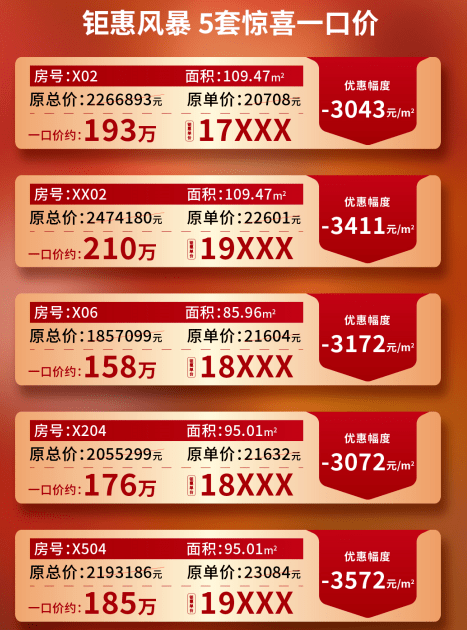 8月份均价还是2.5万/㎡左右,9月底就降了3-4千,近日推出的20套一口价单位,较低单价1.99万/㎡,但只有一套,用于推广噱头。