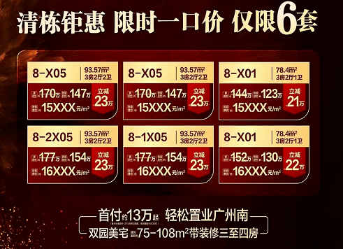 项目位于里水中心小学旁,一直卖着带装均价2.1-2.2万/㎡,现在放出5套一口价单位,均价1.7-1.9万/㎡。