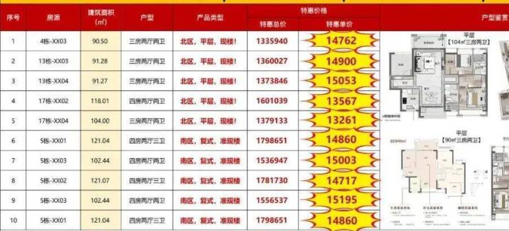 南庄大道旁的国企项目,目前在售的特价房源面积在75-103㎡之间,单价在1.3-1.6万/㎡。