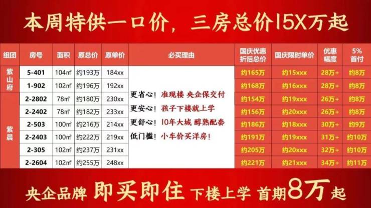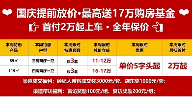 今天盘点下国庆期间五区哪些有大动作的楼盘,有空的家人们不妨去售楼部溜一溜。