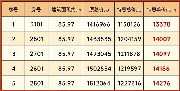 特价房源都是不错的楼层,均价1.3万/㎡!