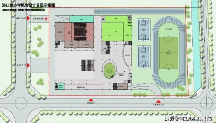 此外,挂牌公告中还发布了港口路小学的设计示意图。