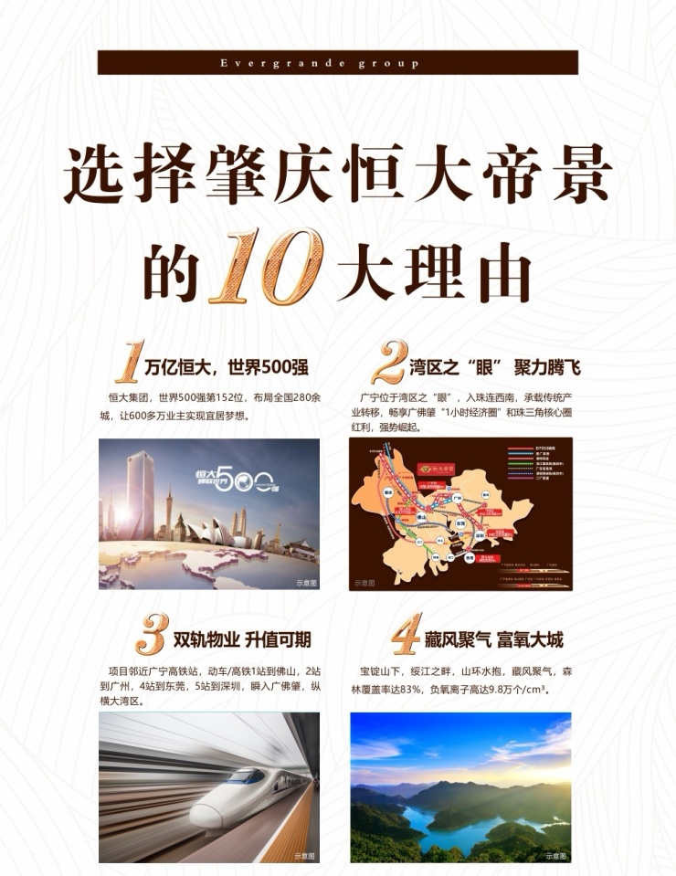 万亿恒大不负每一城!深耕肇庆第十子——恒大帝景。传奇不止,履迹相承,恒大帝景以超强实力和优质匠心,再树肇庆人居峰标,著极广宁,只为超越而来!