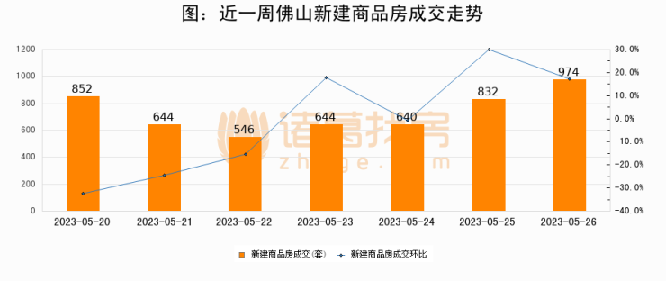 【佛山成交日报】05月26日新房成交974套、二手房638套;涨价房源21套