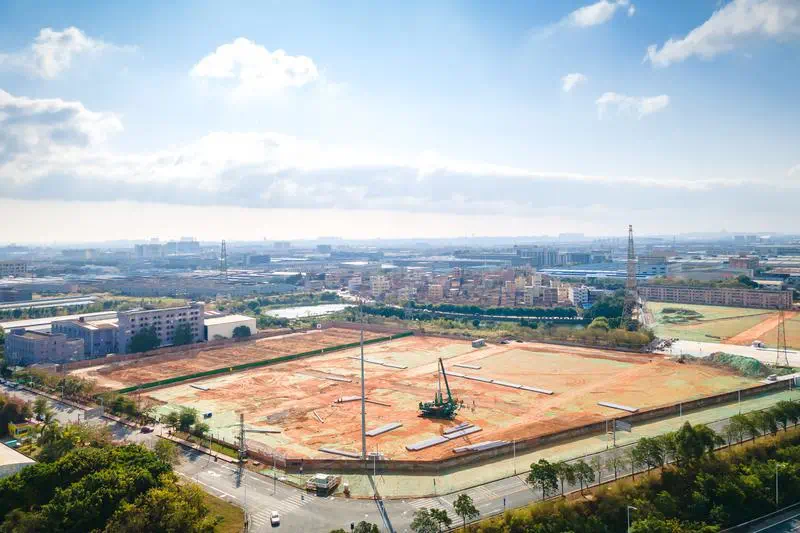 俯瞰三水区云东海街道石湖洲宝盛片区工业园改造项目,旧厂房已经全部拆除,土地已经平整完毕。