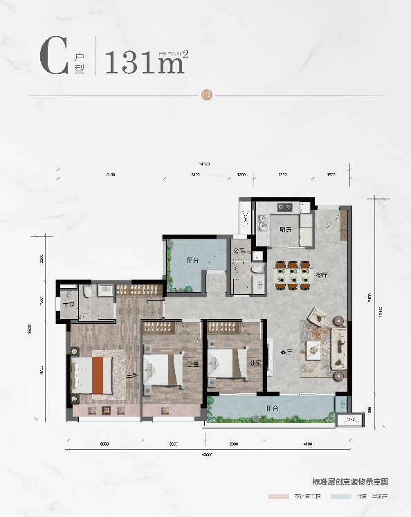 目前项目已经开放99、131㎡三四房的异地板房,其中,131㎡四房为双阳台竖厅设计,配有7.2米长的景观阳台,能充分保证室内通风与采光。