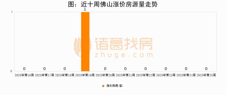 从调价房源来看,第25周佛山涨价房源0套,较上周持平。与此同时,25周涨价房源占比持平