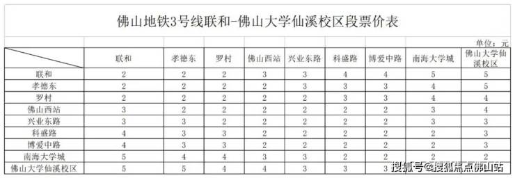 佛山3号线(镇安—佛山大学仙溪校区)将分为 镇安—中山公园、联和—佛山大学仙溪校区 两段运营,其中联和—佛山大学仙溪校区票价最高为5元。