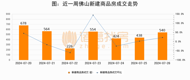 【佛山成交日报】07月26日新房成交540套、二手房418套;涨价房源24套
