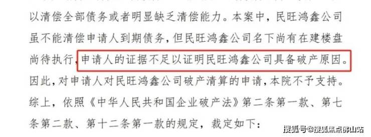 此前民旺鸿鑫公司还曾申请破产重整,最终被法院驳回。