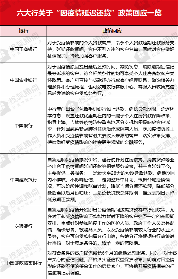 功夫不负有心人。终于在前不久,六大行正式陆续发布了官方回应,小编整理了一份表格,方便大家看的清楚。