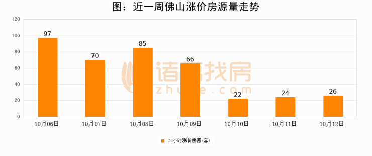 根据诸葛找房数据显示,佛山24小时涨价房源量为26套,较10月11日增加2套,环比上涨8.3%。与此同时,涨价房源占比小幅扩大,业主信心有所提升。
